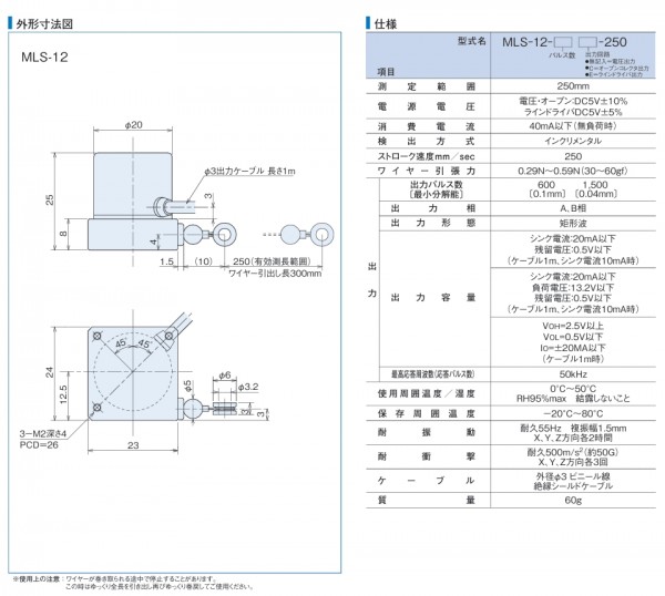 日本MTL *小的拉線編碼器 MLS-12 系列